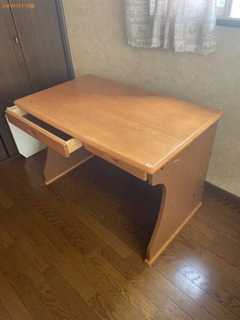 担当のコメント | 学習机、椅子の処理にお困りのお客様からご相談いただきました。運び出しもできることがご依頼の決め手になったようです。片付け110番では、二階の窓からの搬出や階段での運び出しも行わせていただきます。不用品にお困りの際はまたいつでもご相談ください。 |